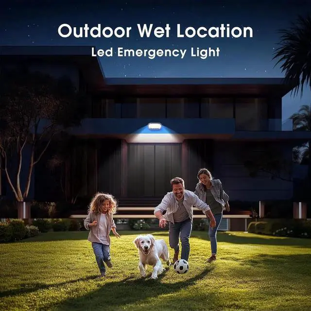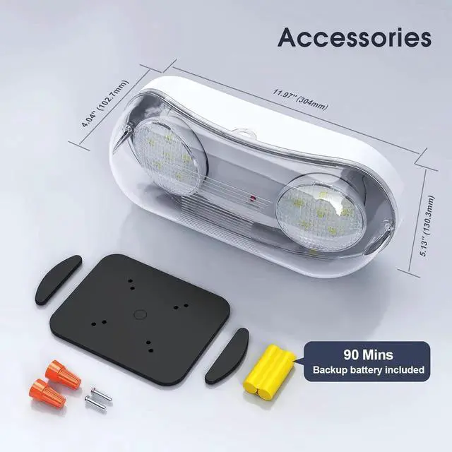 Durable BackupThis weatherproof led emergency light has Super bright Energy Efficient LEDs, built-in 3.6V Nickel Cadmium backup battery provides more than 90 minutes of emergency operation during a power outage, maximum 24 hours for full recharge time. The housing is sealed and gasketed for even better protection, suitable for wet locations, up to 50, 000 hours rated life.