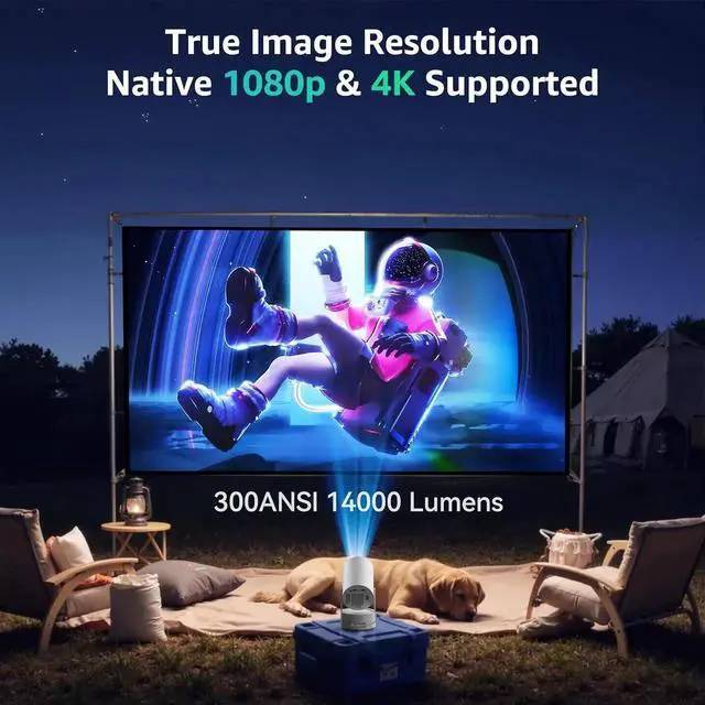 - [Native 1080P and & 4K Decoding] The movie projector with 300ANSI 1080P 4K supported resolution and remarkable 13000:1 high dynamic contrast ratio, which it faithfully reproduces real color content, can make the picture clearer and the colors more delicate. Perfect for home theater setups, outdoor movie nights, or playing games