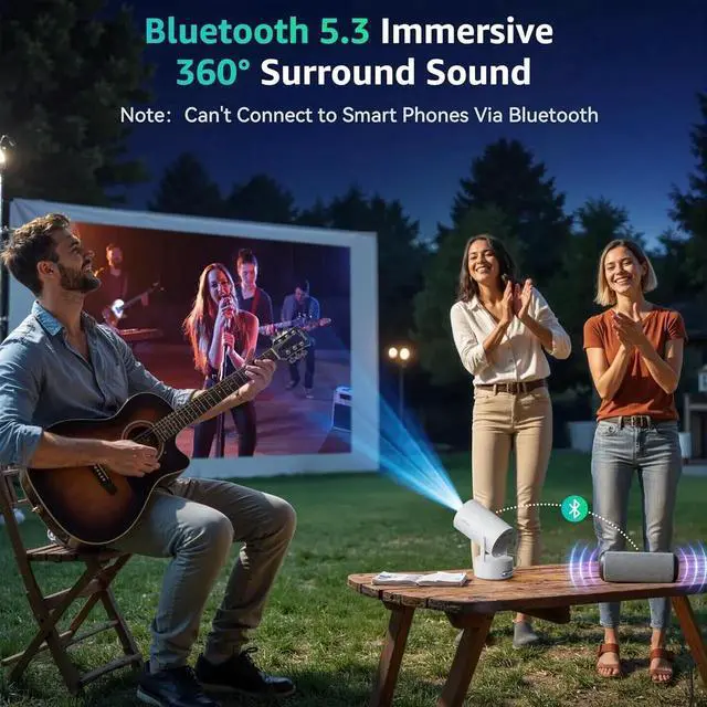 - [Lightning-Fast 5G WiFi & Bluetooth 5.3 ] The bluetooth projector is equipped with WiFi 6 and Bluetooth 5.3, ensuring faster and more stable streaming and low-latency gaming. Easily connect wireless speakers or headphones for enhanced audio, while the built-in HiFi speakers deliver immersive cinema-grade sound anywhere