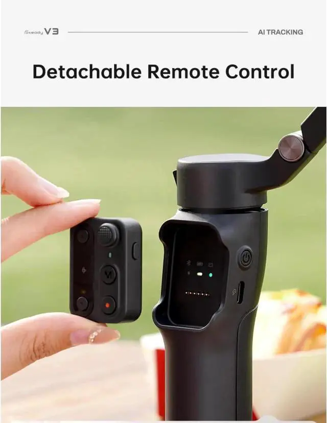 - Detachable Remote ControlVersatile Control at Your Fingertips. Control your phone camera with ease and precision, ensuring every moment is flawlessly captured. Handheld or Remote Control, at your convenience. The remote can detach for standalone use or attach to the handle as an operational panel, while the handle simultaneously charges the remote. Experience convenience like never before.