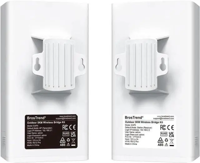 Plug-and-Play: The WiFi bridge comes pre-paired for a hassle-free setup. Simply power the AP and Station in the same room for automatic pairing in minutes. Supports both wall and pole-mounted installations for flexible deployment