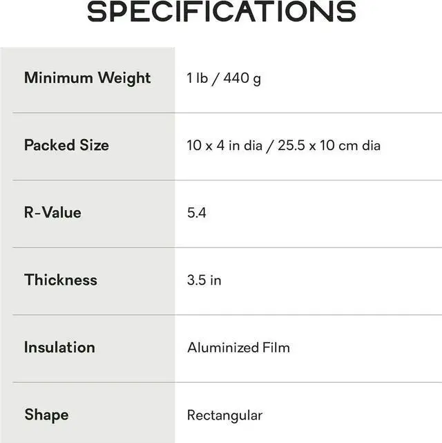 Spaceframe baffles offer unparalleled stability and weight distribution, using low-stretch, die-cut trusses that eliminate springiness. false 3.5 inches of stable, cushioned loft for incredibly comfortable nights. falsebluesign approved premium nylon fabrics shave grams while offering superior puncture and tear resistance. false- Two layers of floating Thermal Mirror metallized film provide quiet insulation with an unprecedented weight-to-warmth ratio.