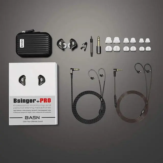 PROFESSIONAL EAR MONITORS- Evolved from personal monitor technology, BASN PRO ear monitors have been tested by musicians. This headphone monitors offer detailed sound with highs, mids and lows for professional monitoring and personal listening. falseAFFORDABLE ACCESSORIES - Provided with single layer and double layer eartips, the iem earphone includes three sizes of sleeves for two different styles. Choose your proper size to create wonderful fit. A good seal is key to optimizing noise canceling. false- GREAT NOISE ISOLATION - Soft silicon noise isolating sleeves block up to 25 dB of ambient noise.