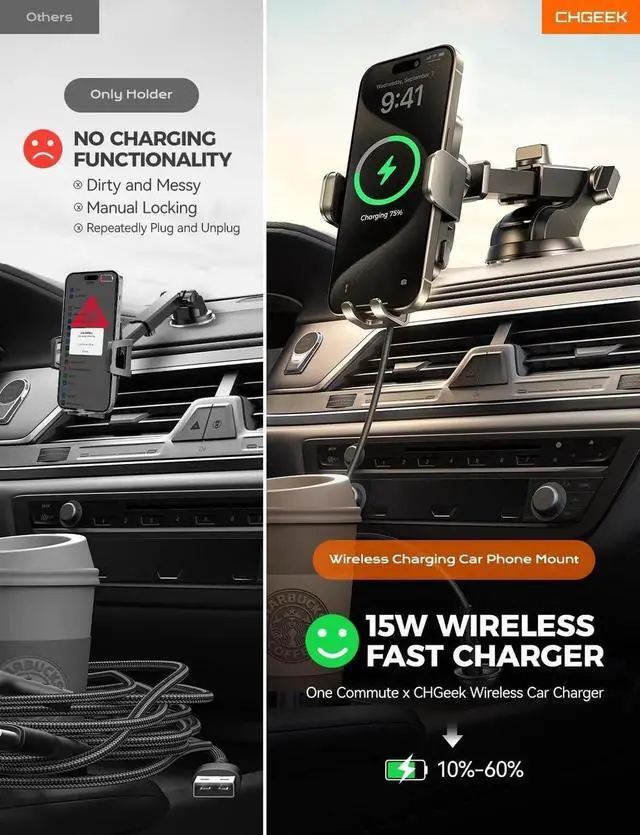 ESSENTIAL CAR ACCESSORIES & W-ARRANTY: There are no messy cables or groping plugs while driving. Wireless car charger is an essential accessory for any male or female car, it can improve driving experience! Besides, our wireless car charger offers a 2-year w-arranty service. If you need any assistance, please feel free to contact us. Our professional customer service team is available 24 hours a day to provide you with high-quality service.