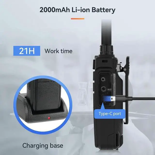 Type-C ChargingUsers use the power bank or other power sources to prolong the work time of walkie talkies timely.