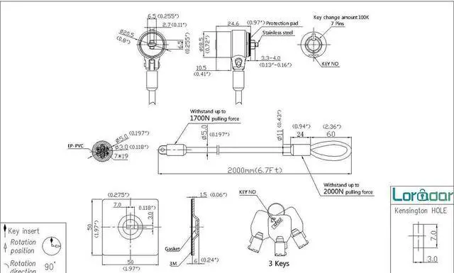 *PACKAGINGLordar Security cae lock ( 6.7 ft long), Anchor plate with strong adhve, Anchor glue can bear more than 100lb Sily loop your laptop around a stationary object with the cut-rstant galvanized steel chain.