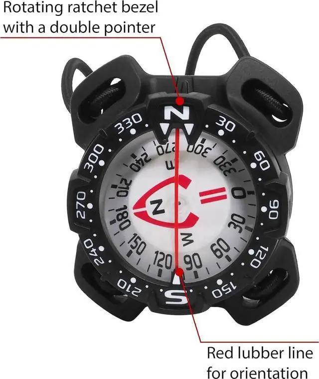 - EASY TO READ: The prominent pointer offers accurate top and side readings. You can easily orient yourself by looking at the red lubber line, and mark your way using the 360° rotating ratchet bezel with a double pointer.