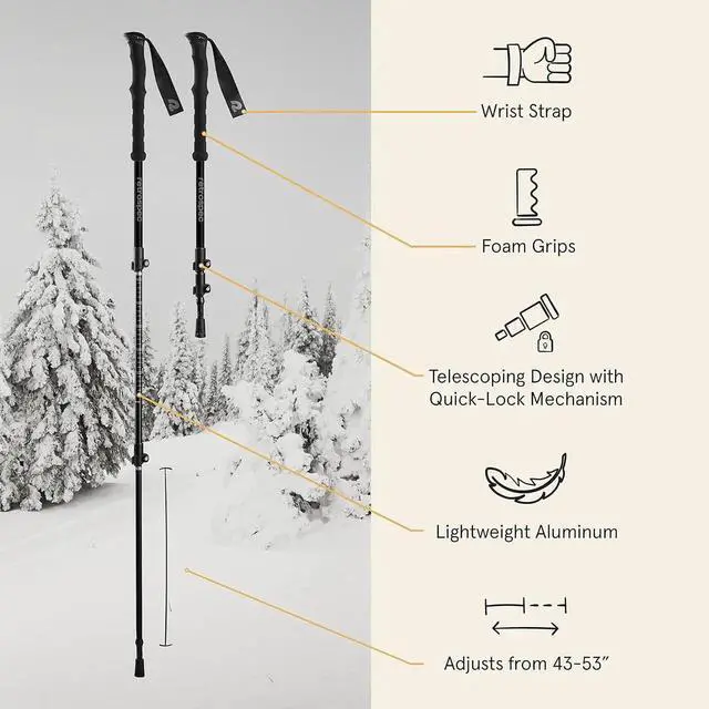STABILITY & CONTROL: Lightweight trekking poles for snow with terrain-specific attachments keep you balanced on any surface. Adjustable heights ensure a custom fit for your adventuresfalseBUILT