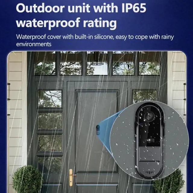 Outdoor doorbell waterproof: The outdoor doorbell has an IP65 waterproof rating, and the waterproof cover has built-in silicone, which makes it easy to deal with rainy conditions. In open air, the connection distance will be 50-80 meters, and it will be 10-30 meters if there is certain obstacles. If there are solid walls or iron doors blocking the signal, the connection distance will be shortened and standby time will be shorter due to search signals.