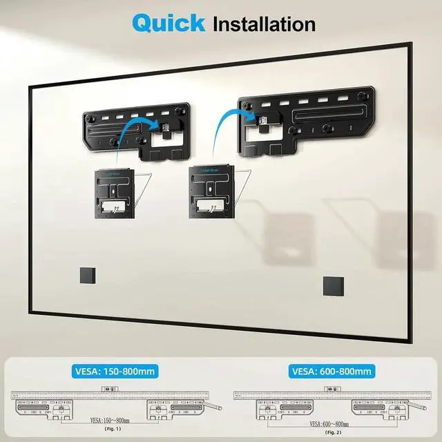 Simplified Installation: Comes with ry accessories, no professional needed, you can hang your TV in just 10 minutes follow the instruction. Works on concrete, brick and wood studs (VESA holes must match wood stud spacing)