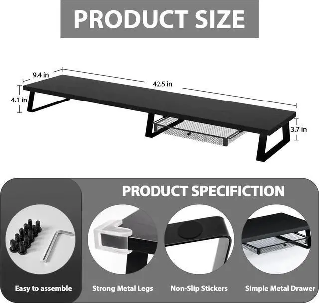 Monitor Stand With Storage: Optimize your workstation with our versatile monitor stand riser. It offers a convenient workspace beneath your monitor for storing your keyboard and accessories. Additionally, it doubles as a TV stand, printer stand, laptop riser, or even a desk shelf.. Maximize space and efficiency in just one productfalseEasy to