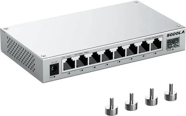Magnetic Feet & Flexible PlacementAttach this 2.5G b switch managed device to metal surfaces (racks, desks) with 4 strong magnetic pads or use included rubber feet. Compact size fits tight spaces, from home offices to media cabinets. falseAuto-Negotiation & Energy-Efficient 2.5G bE SwitchPlug-and-play setup with auto-MDI/MDIX and 802.3 az EEE cuts power use. Backward compatible with 1G/100M devicesseamlessly upgrade your network without replacing existing gear. false- 2.5G &10G ConnectivityBuild a blazing-fast 2.5G b managed switch setup with 8× 2.5G Ethernet ports ( 2.5GB ase-T) and a 10G SFP slot, ideal for bandwidth-heavy tasks like 4K streaming, NAS transfers, or low-latency gaming.
