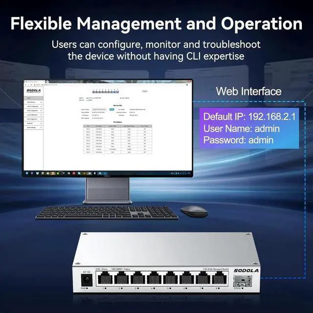 - Easy Web Management for Home & ProsumersConfigure (LACP, VLANs, QoS, IGMP snooping and more basic management features effortlessly via the web-managed 2.5G switch interfaceno CLI required. Secure your network with port-based access control and prioritize devices like gaming PCs or workstations.