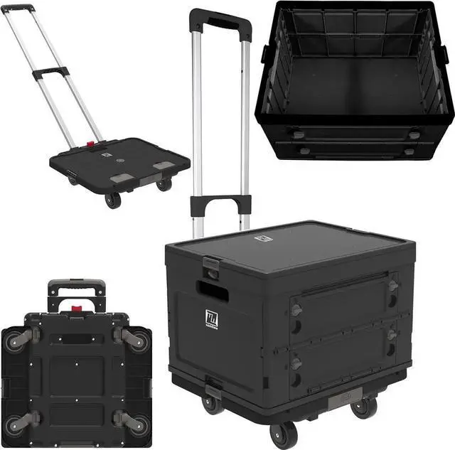 Ultra-Compact & Ergonomic: Discover the thinnest folding design on the market for unparalleled portability and easy storage. This collapsible rolling cart offers an ergonomic handle and secure locking side panels for comfortable, stable use, wherever you go.