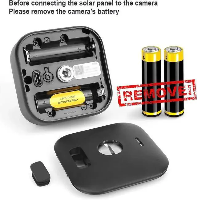 Important Tips: Before connecting the solar panel to the camera, please remove the camera's battery.