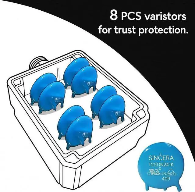 Premium Surge Protection Components. Built with 8 high-quality Thermally Protected MOVs sourced from Taiwan, offering excellent energy dissipation, fast reaction to surges of varying intensity, increased redundan, reduced risk of thermal failure, and an extended operational lifespan.