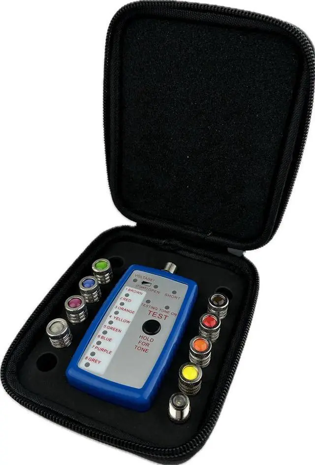 Includes 8 number-coded terminators Auto Power Off: 12 seconds after Pass/Fail results 30 minutes in "Tone" mode Finds and identifies multiple coax cables Built-in tone generator Max. map 8 locations at one time. Comes with carrying pouch.