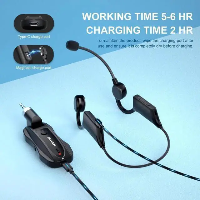 - Ergonomic Design & ComfortableThis wireless headset microphone comes comfortable and secure-fit design, the microphone can keep in place during high-impact use or rigorous activities. ONLY 0.1 lbs lightweight makes you barely feel it on your head, helping you get rid of shackles of cable for maximum comfort and more freedom to move around.