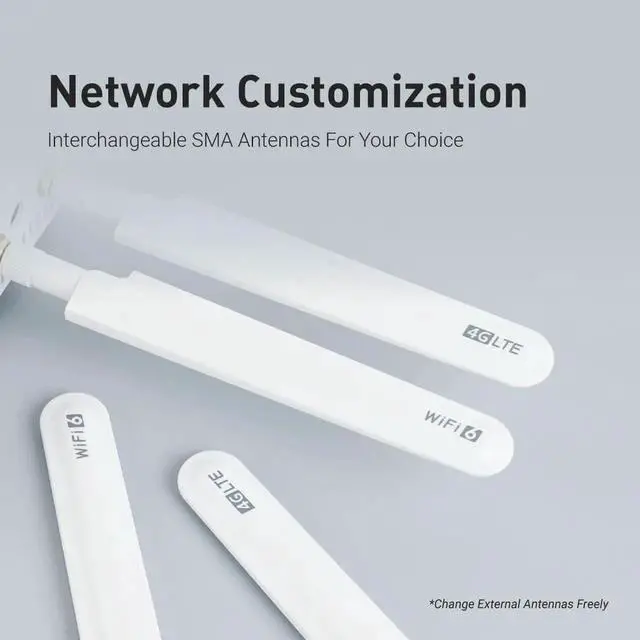 - Interchangeable SMA ConnectorsThe GL-X2000 features four SMA connectors, allowing for the integration of multiple external antennas to enhance the device's performance across various application scenarios.