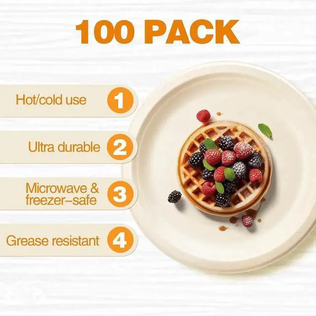 Made entirely from sugarcane bagasse, our eco-friendly plates are a sustainable choice compared to regular disposable options. These BPA-free, plastic-free, and PFAS-free plates are tough yet gentle on the environment. Ideal for events like weddings, picnics, and parties, they ensure your celebrations are both durable and environmentally responsible.