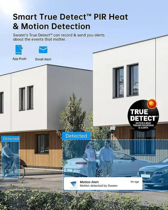 Smart Video Analytics and SwnnForce Technology: Benefit from advanced smart video analytics that can detect and alert you to any suspicious activity. The Force technology features red and ue flashing lights, sensor spotlights, and sirens to deter potential intruders.