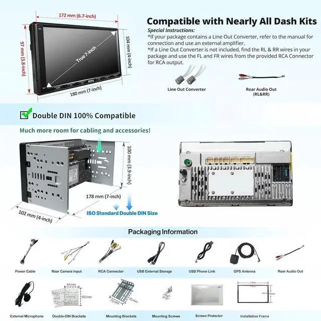 A6 PF with: (1) Time Correction, aligning the time it takes for audio signals from each speaker to reach your ears; (2) Speed Compensated Volume, automatically adjusting volume as the speed changes, to adjust for road and wind noise; (3) 36-band EQ, allowing deep customization for even the most sophisticated ears. The built-in max. 4*45W & RMS 4*24W amp offers great sound quality. Live Rear-View & Customer SupportLRV offers a real-time rear-view even when driving forward (ATOTO AC-HD02LR camera required), free from the obstructions behind you inside the vehicle. A6 PF can process 720P HD rear-view camera input (other car stereos can only connect to cameras of 480-600 lines). ATOTO's professional customer support team is there for you to solve any problems concerning the installation, operation, etc. of your ATOTO products. Get continued system updates when available. - High PerformanceAs the upgraded and enhanced successor to the popular A6 Y & A6 Karlink, A6 PF has Android 10.0, ARM Cortex A55 8-Core & 2G+32G. 7-inch 1024*600 IPS screen with a 178° full-viewing angle allows clear viewing even in broad daylight. Max.
