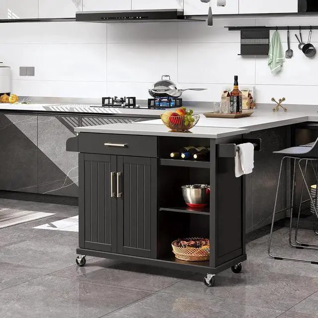 MUST-HAVE MOBILITY: This mobile kitchen island sits on 4 caster wheels that offer effortless maneuverability. With a four-wheel base, it can go anywhere you need it and the 2 locking casters can keep it in place when you dont want it to move.