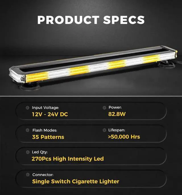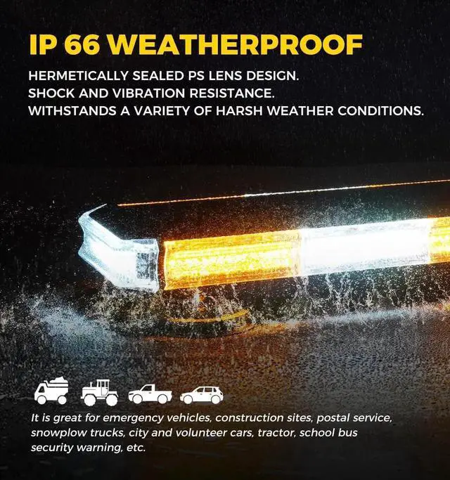 - High Quality: The amber light bar adopts an integrated heavy - duty aluminum alloy design with a scratch - resistant lens to meet more brightness needs, ensuring excellent visibility in all weather and remaining stable even in extreme weather