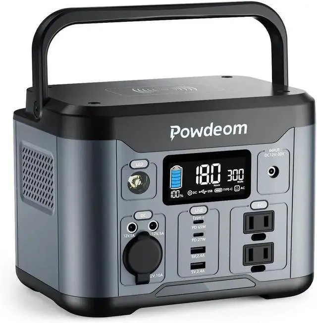 OUTPUT MEET YOUR NEED: The battery pack is equipped with 2* USB ports, 1* PD 27W or QC 3.0 port, 1*PD 65W port, 1*car charger, 2*AC 300W power outlet, and 2*DC output. It could provide you with electricity for multiple devices at the same time, making your camp life more convenient. (Note: If you want to charge faster, we recommend that you prioritize using the AC or PD port for charging. )