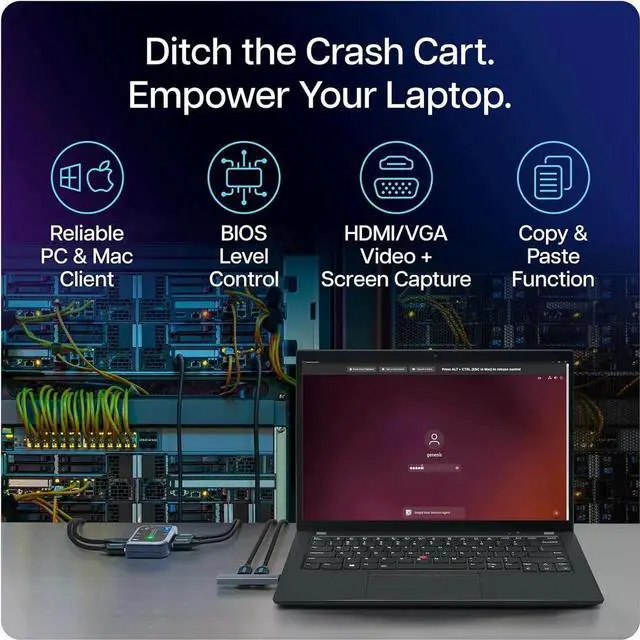 Wide compatibility meets handy features in this IT troubleshooting toolkit like HDMI and VGA video support, keyboard and mouse control, and enhanced access PLUS the device doesnt use your laptops battery