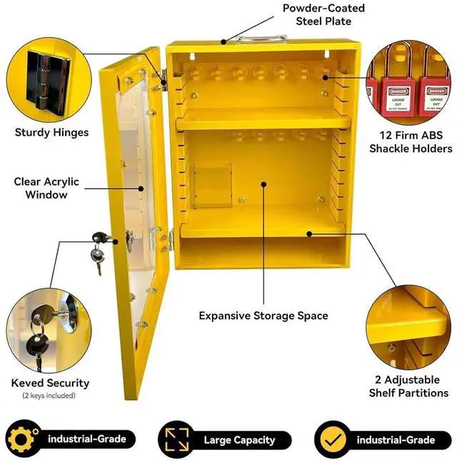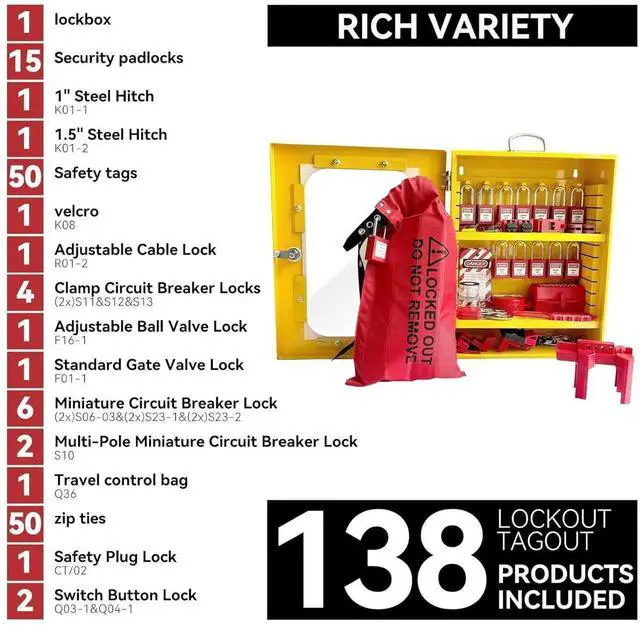 Safety StandardsThere is a handle on the locking station to carry it when you go out to work, or you can install it on the wall. Loto kit has storage for lockout tags and loto devices ties for security. Lockout tagout wall mount cabinet meticulously designed to exceed compliance with safety standards and requirements.