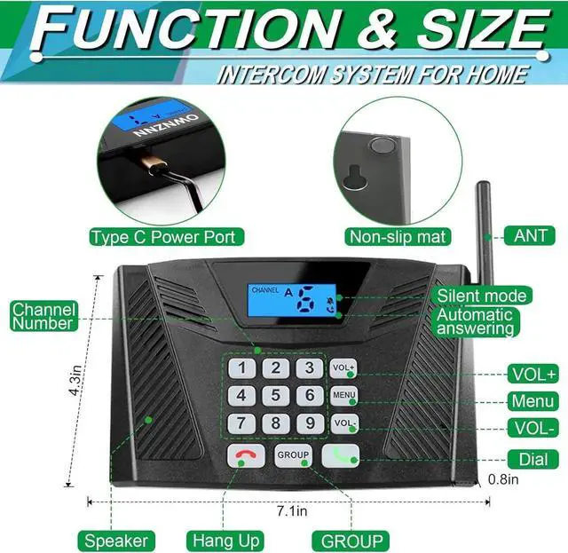 - Powerful Intercom: Intercoms Wireless for Home can meet different communication needs in different circumstances. Group functions (conference calls) can dial all sites on the intercom. Room-to-room intercom can provide two-way communication. When the automatic answer function of the intercom is activated, the receiver automatically answers the call after two rings without pressing the call button. Very convenient for business offices and the elderly.