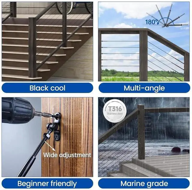 Easy to install: This cae railing kit does not require any pre-drilling and can be sily installed by tightening the screws. The wide adjustae range makes installation easier, especially for beginners, who might not cut the cae to the precise length. Apply for both wood posts and wood posts with sleeves