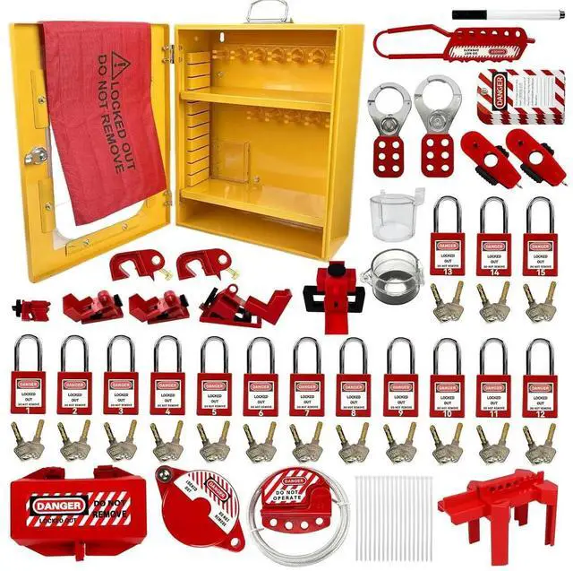Safety StandardsThere is a handle on the locking station to carry it when you go out to work, or you can install it on the wall. Loto kit has storage for lockout tags and loto devices ties for security. Lockout tagout wall mount cabinet meticulously designed to exceed compliance with safety standards and requirements.
