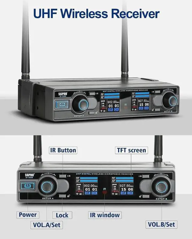 - With Handy Functions: The TFT screen shows system info and each channel has a separate control knob. The wireless mic system auto-locks when there is no operation for 10+ seconds as to avoid misoperatio