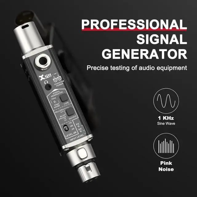 [Phantom Power Verification] - Test phantom power supplies with visual indicators: solid light for 4452V and flashing for 2444V, ensuring condenser microphones receive appropriate power.