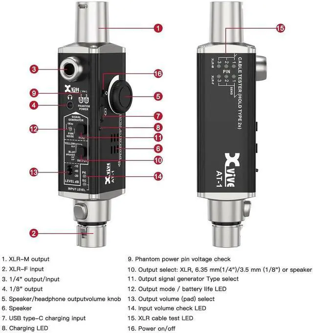[Complete Testing Kit Included] - Comes with a 1/4" male-to-male adapter, USB-C charging cable, and a protective carry case with belt clip, making it an essential tool for audio professionals.