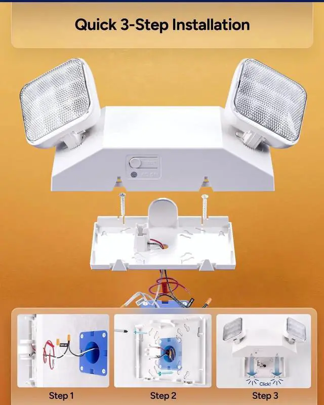 - SIMPLE INSTALL - Easily secure this bright emergency light fixture with its slim profile to the wall or ceiling. Wire the emergency light via a J-box or conduit. Mounting equipment is included inside of the fixture.