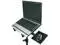 Free Standing Tripod Base Laptop Holder. Can accommodate virtually any size laptop. Four stoppers, adjustae in width and depth, will securely anchor any size laptop witt interfering with input/output ports, pansion slots, cd-rw/dvd drives, or AC adapter sots placed on either side of the laptop. The laptop tray is height and tilt adjustae and swivels 360 degrees to allow for ideal positioning. Equipped with pull out mouse tray that can be positioned on either the right side or the left side of the laptop, and is retractae for easy storage and transport.