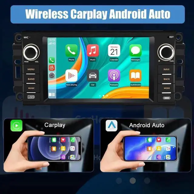 - Built-in Wireless CarPlay & Android AutoA Smart Way to Use Your Phone in the Car, Simply connect your iPhone/Android phone to the Android car radio via bluetooth. Use smart voice assistant or touch the display, you can get directions, make calls, send and receive messages, and enjoy music etc. A smarter, safer and more fun way to use your phone in the car, and keep you stay focused, connected and entertained.