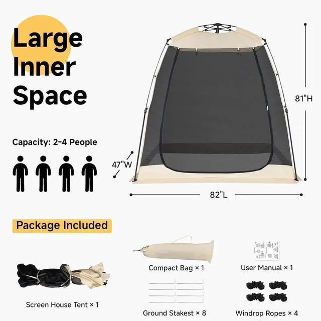 360° Ventilation & Bug Protection: Stay cool and bug-free with high-quality mesh walls that maximize airflow while keeping insects out. The robust hub structure adds extra protection from dirt and pests, creating a cleaner, more comfortable space for relaxing, dining, or game-day fun.