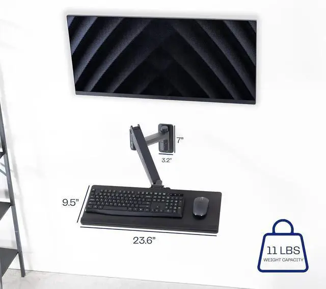 Tray Extension: The tray extends a total of 37.8 from the wall, creating an easily accessible platform for your keyboard and mouse. When not in use, it folds up against the wall for space-saving storage