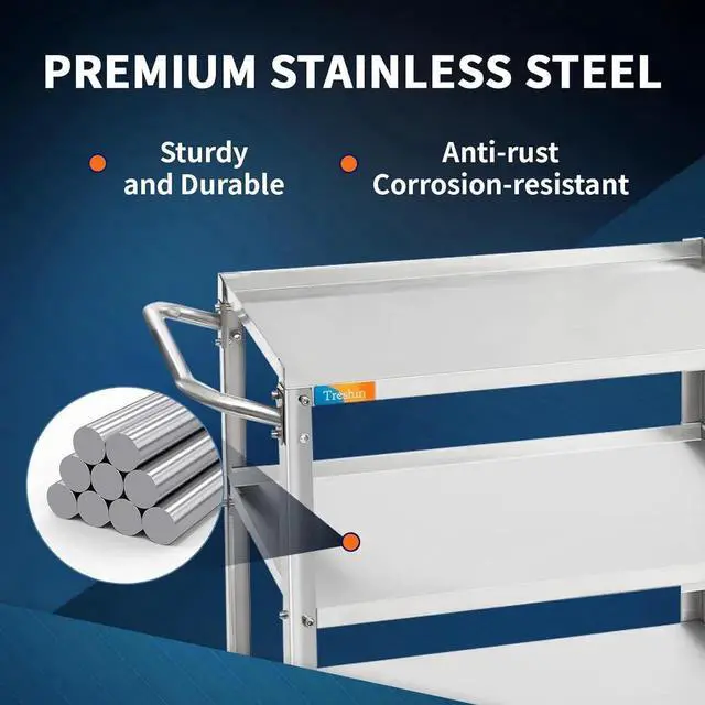 Easy to Install: This stainless steel cart adopts ble L structure, which is easy to assemble and more sturdy and durable. We provide all necessary accessories and detailed instructions to help you complete installation in no time. We provide excellent customer service and offer the best solutions to any issues you may have
