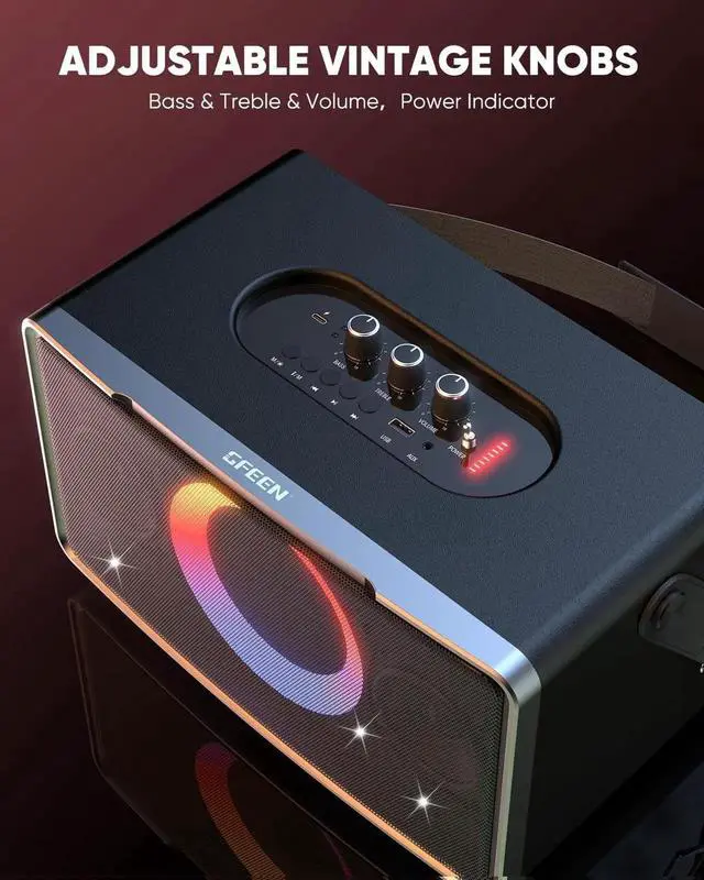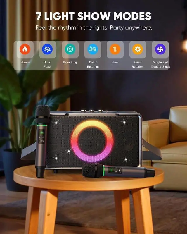 WIRELESS MIC: uetooth speaker with microphone supporting 3 modes (KTV/Reverb/Speech). Bring it to your living room for family party sessions, or take it outdoors for park barbecues and picnicsturn any space into your personal stage.