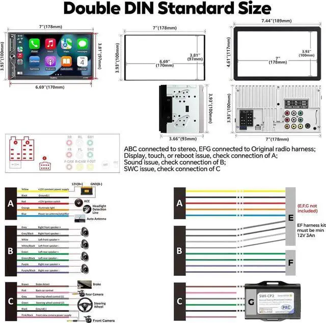 ![Alt view image 6 of 7 - [QLED Screen Upgrade] 7" Double Din Car Stereo with Wireless appl e CarPlay and Android Auto, 240W Powerful Sound, 4.2-Channel Audio Output, Bluetooth, MirrorLink, Backup Camera, AM/FM Car Radio](https://c1.neweggimages.com/productimage/nb640/C2GMS251220026DVZAF.jpg)