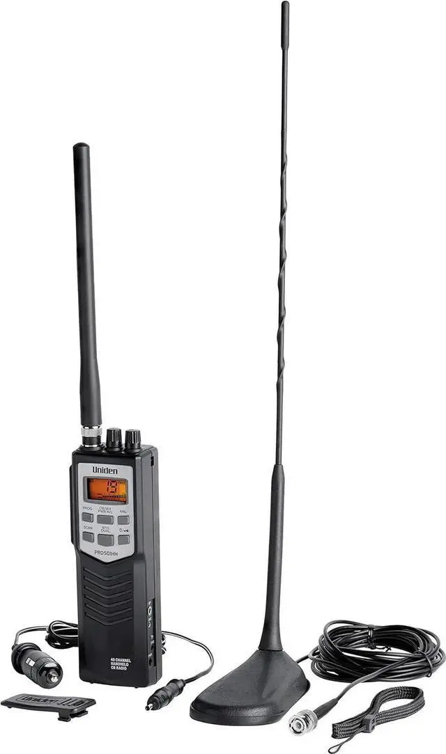 The PRO501TK can be used with the included flexible rubber antenna and recharge or Alkaline batteries for port use. Remember, is the name in CB radios.