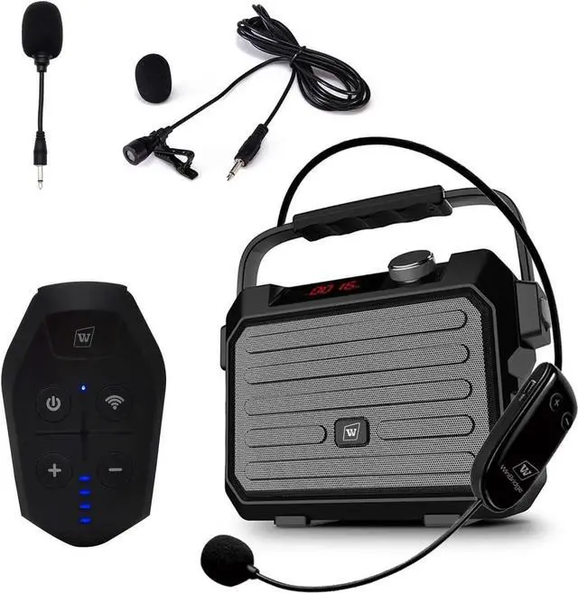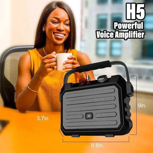 - Portable PA System. This portable voice amplifier for teachers is a 8.26 * 6.61 * 3.5 in" size, 3.3 lb weight loudspeaker, which is compact and easy to carry, suitable for taking classes, yoga instructing, outdoor sports, parties, meetings, karaoke, e
