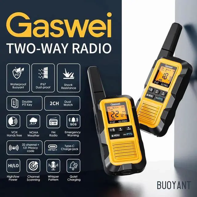 NOAA Weather Alerts: Access 10 NOAA weather channels with real-time alerts. Stay prepared and connected during severe weather. The G2pro+ also supports FM radio ( 87.5H z 108.0H z) for instant access to your favorite stations.