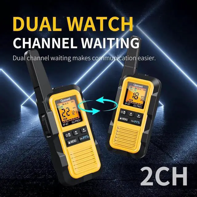 Key Features: The 2CH Dual Watch Mode allows simultaneous scanning of two channels. The VOX function offers multiple sensitivity levels for hands-free operation while on the move. SOS Alert, a single button press sends an emergency alarm tone to your companions. The strong vibration alert while Whisper Mode ensures clear, loud transmission even when speaking softly. Adjustable high/low power with power-saving mode, scanning functionality, and quiet charging capabilities.