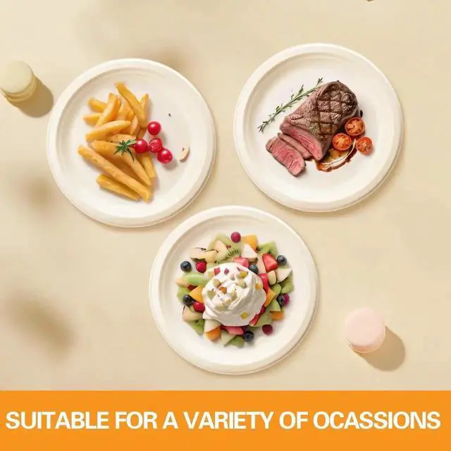Made entirely from sugarcane bagasse, our eco-friendly plates are a sustainable choice compared to regular disposable options. These BPA-free, plastic-free, and PFAS-free plates are tough yet gentle on the environment. Ideal for events like weddings, picnics, and parties, they ensure your celebrations are both durable and environmentally responsible.